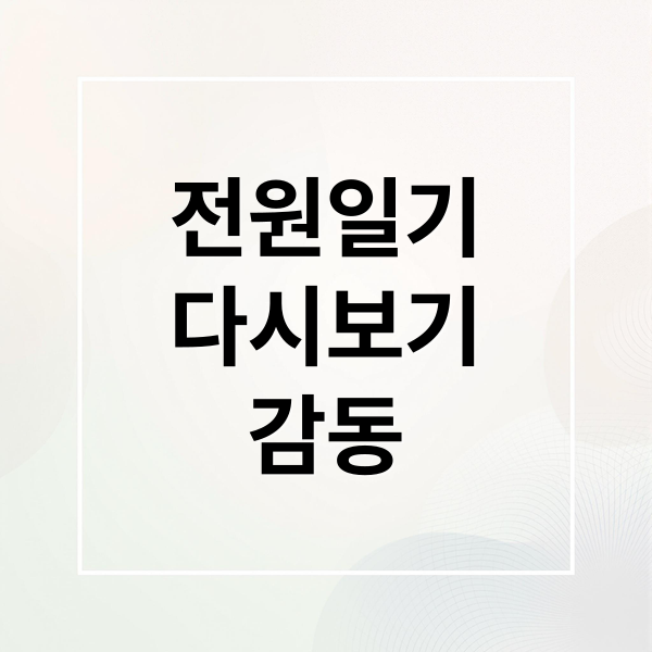 이렇게 다양한 채널과 시간대를 통해 전원일기를 즐길 수 있도록 편성되었으니, 놓치지 않고 꼭 시청해보세요. 특히 주말과 평일 저녁 시간을 활용하면 더욱 여유롭게 추억의 명작을 감상할 수 있을 거예요. 전원일기 재방송 편성표를 잘 확인하시고, 양촌리 사람들과 함께 따뜻한 시간을 보내시길 바랍니다. 20년이 훌쩍 지난 드라마지만, 여전히 많은 사람들에게 사랑받는 전원일기의 감동을 다시 한번 느껴보세요.