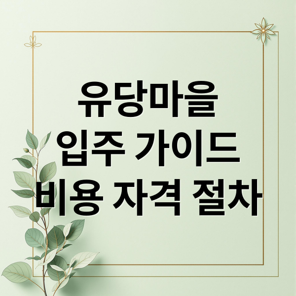 유당마을 입주 완벽 가이드: 비용, 자격, 절차부터 시설까지